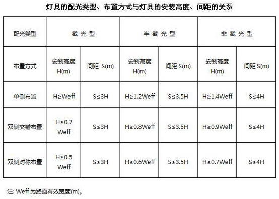 1) 快速路、主干路必须采用截光型或半截光型灯具;