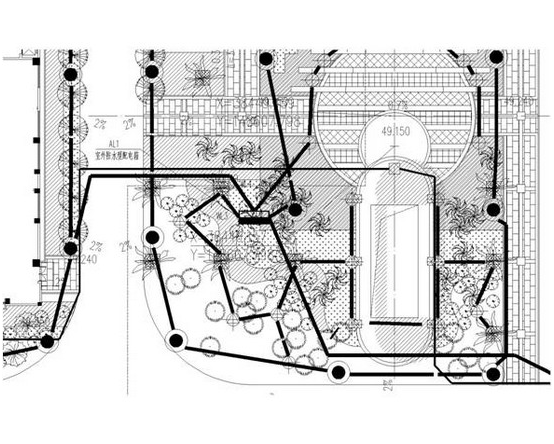 而在实际设计中,由于园区内通常是不允许外来车辆自由行驶,且一般只允许游园车和内部车辆使用车道,使用频率很低,因此从绿色、节能的设计角度出发应以低档照度值为准。而在车行道路照明灯杆间距要求中,因采用低照度设计,故建议灯具布置方式采用双侧对称布置,其目的是弥补因照度过低造成的道路宽度的不明显和由于园区路面通常因园林效果设计要求使其曲面和坡度变化较大,因而造成的驾驶员路面观察不清晰所带来的不安全的影响。